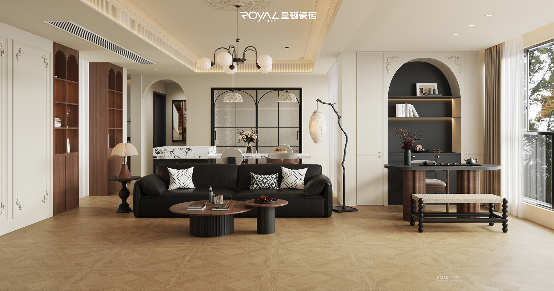 灵感来源:3D 数码釉 以微米级精度复刻天然木纹的生长轨迹,每一道肌理都承袭了时光的温度,每一次拼合都是对自然形态的静默写生。木纹与釉面相遇 , 在空间中生成一种温和的叙事力。釉层之下,是致密而坚韧的保护,耐磨防污。从此山林的呼吸落入居所,晨光暮色间,触目皆是温润,自然并非遥不可及,它被安放在每一寸行走坐卧之间,与烟火相伴,长成家的底色。凡尔赛系列,是滋养生活的诗,也是长久陪伴的岸。