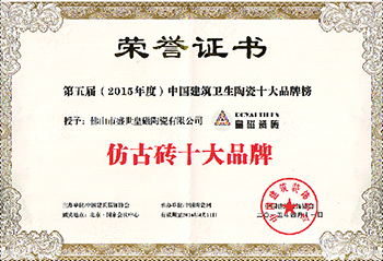第六届中国房地产与泛家居行业跨界峰会暨年度中国建筑卫生陶瓷十大品牌颁奖典礼上,再获仿古砖十大品牌荣誉称号
