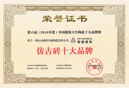 再度荣获中国建筑卫生陶瓷《仿古砖十大品牌》